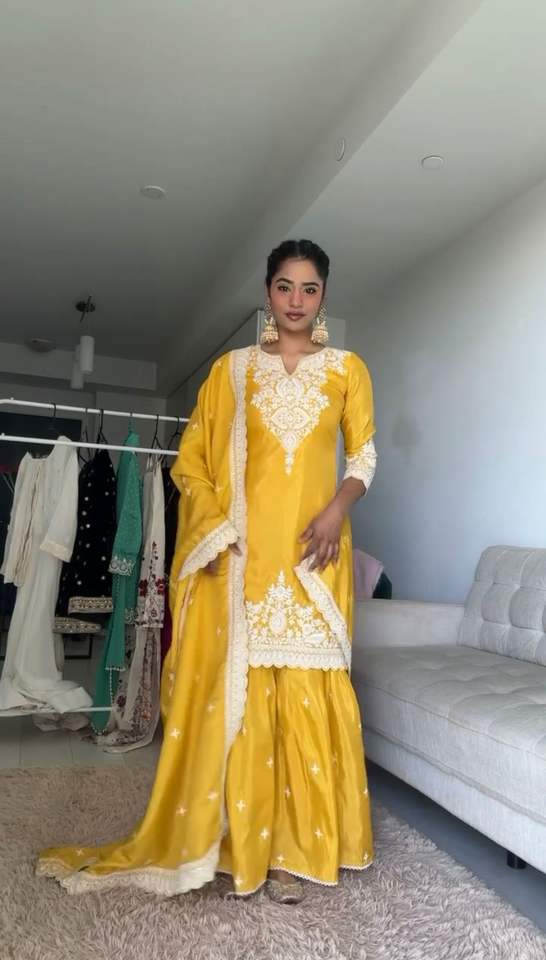 ชุดผ้าไหมที่สวยงามสำหรับผู้หญิงชุดปาร์ตี้ salwar kameez ด้านบนล่างและชุด dupatta พร้อมด้ายและงานปักเลื่อม