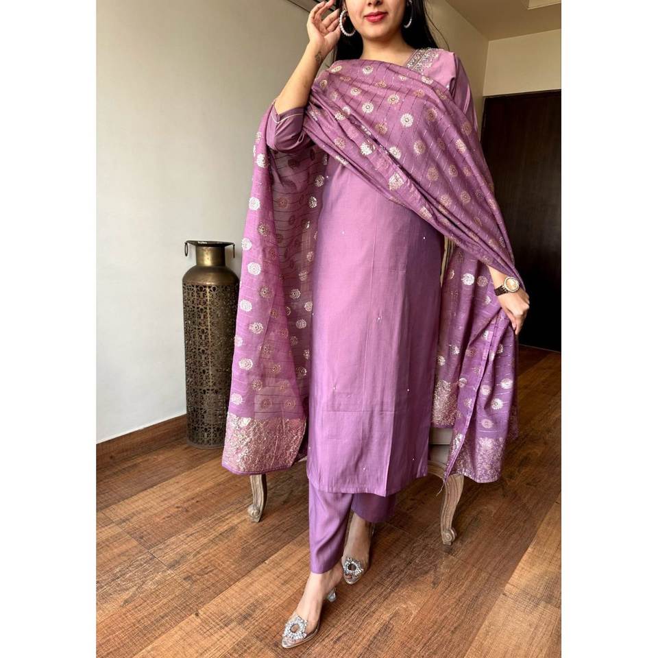 ชุดออกงานสวยงาม เสื้อและกางเกงพร้อมผ้าคลุมไหล่ ไซส์ XL ชุดหรูหรา