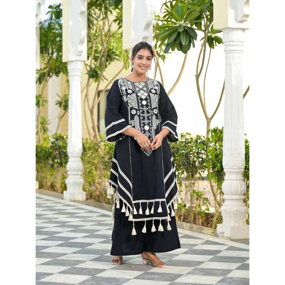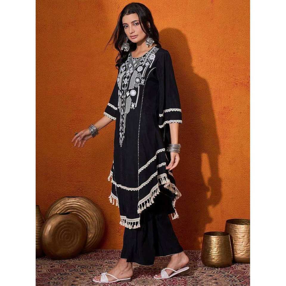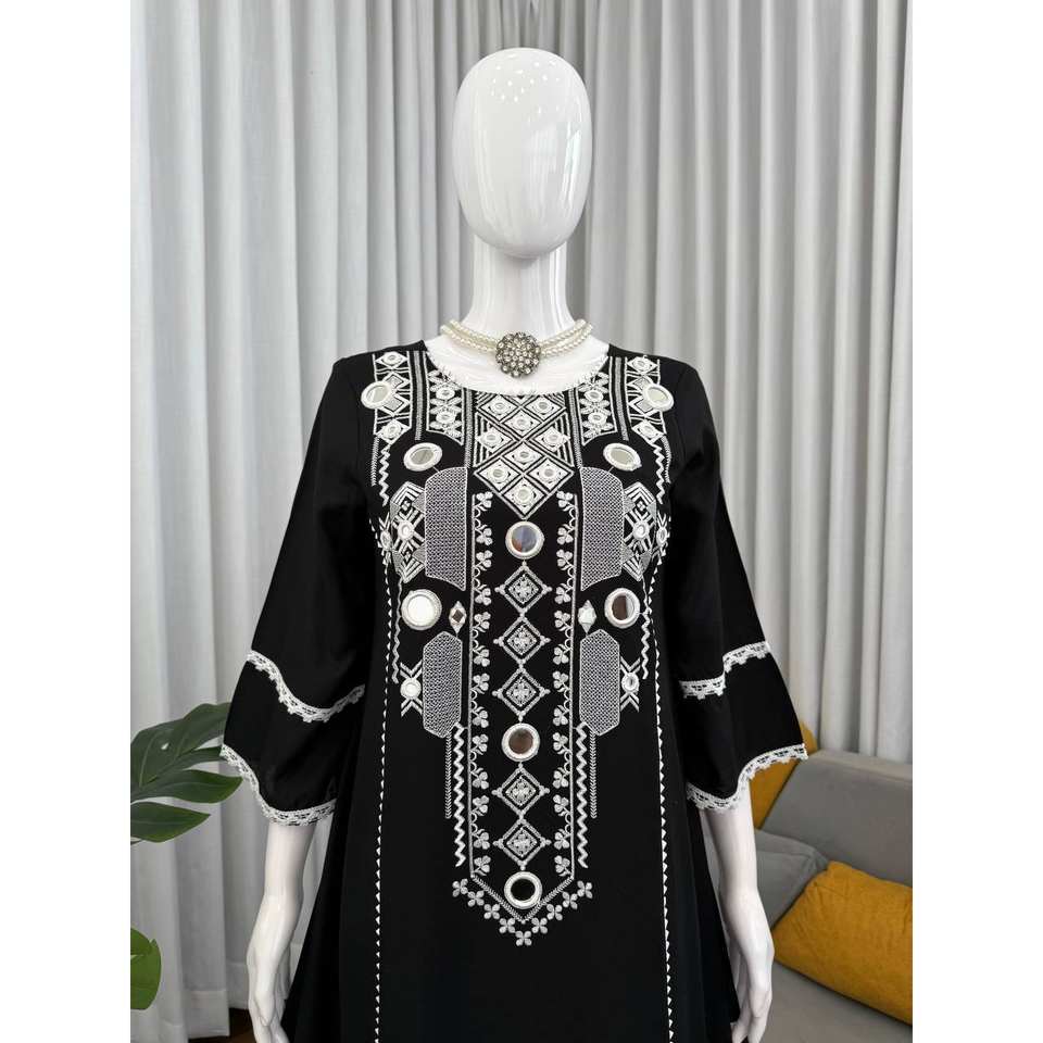 ชุดเสื้อและกางเกงสำหรับงานปาร์ตี้สวยงาม ตกแต่งด้วยงานกระจกแท้ ไซส์ XL เสื้อแขนสามส่วน