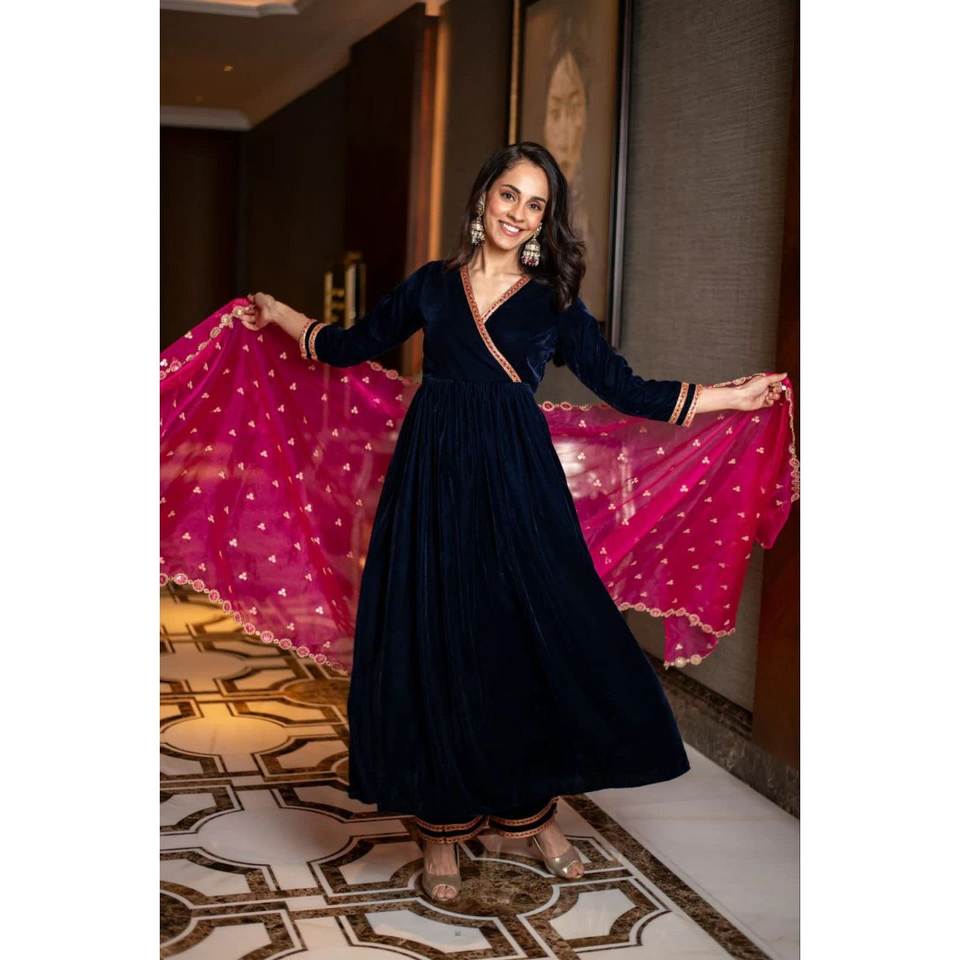 ชุดปาร์ตี้สวยสวมด้านบนและกางเกงมี dupatta ขนาด XL