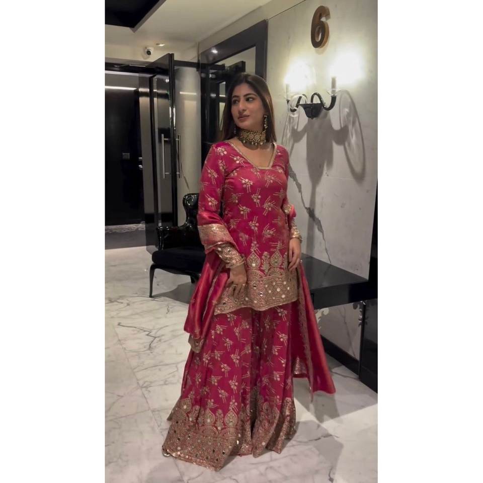 Beautiful Red Party Wear Top and Sharara with Dupatta XL Size for Elegant Look by RTC