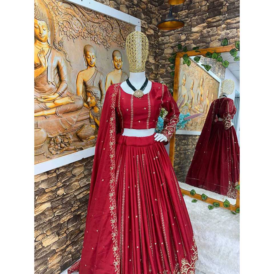 ชุดเลเฮนกาโชลีงานปาร์ตี้สวยงาม ไซส์ XL พร้อมงานปักอย่างประณีต