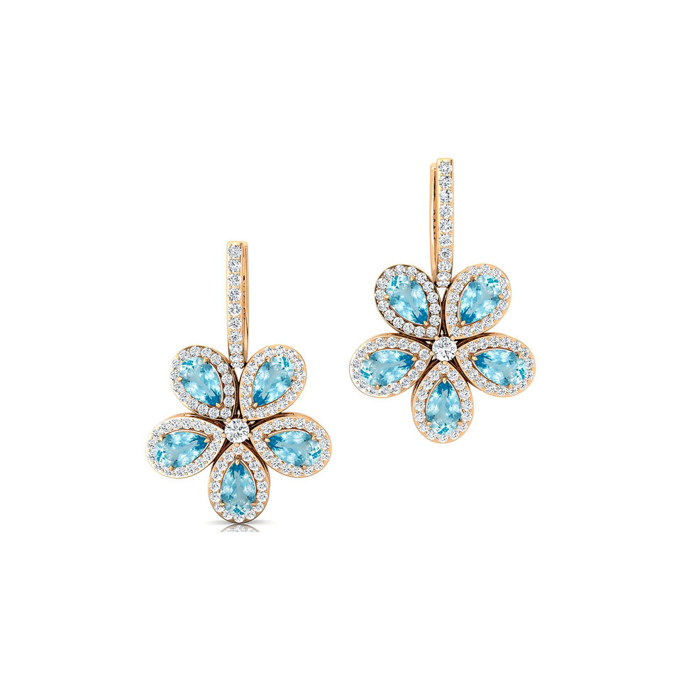 สวยแพร์ตัดอ่างน้ําธรรมชาติอัญมณีและเพชรโอชะออกแบบดอกไม้ห้อยวางต่างหูสําหรับผู้หญิงในทองคําแท้ 18k