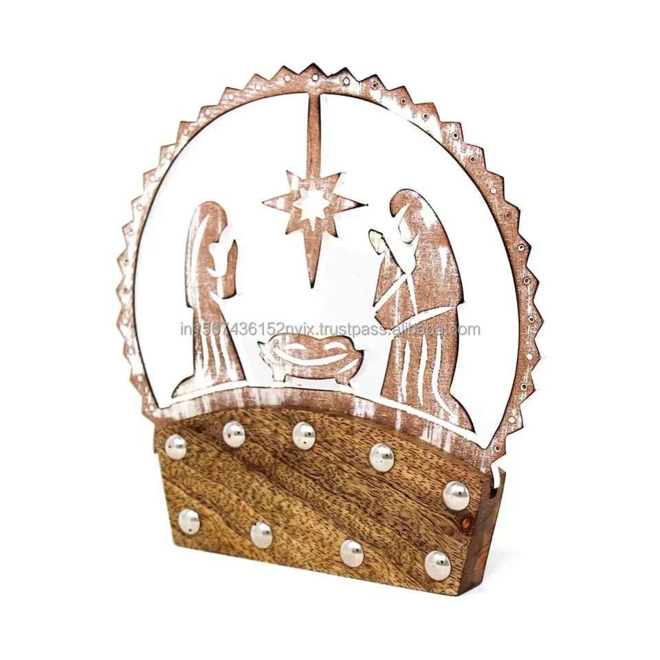 ฉากการประสูติของไม้สนที่สวยงามพร้อมขาตั้งไม้มะม่วงที่แข็งแรงเหมาะสำหรับการจัดแสดงในเทศกาลคริสต์มาสและการตกแต่งบ้านในวันหยุด
