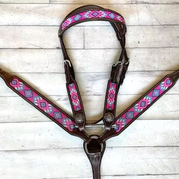 ชุดหมุดปักลูกปัดม้าสีชมพูสวยงามน้ำหนักเบาหนังแท้แผ่นอานม้าตะวันตกอุปกรณ์ขี่ม้าตามฤดูกาล