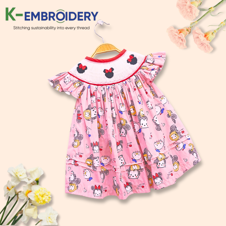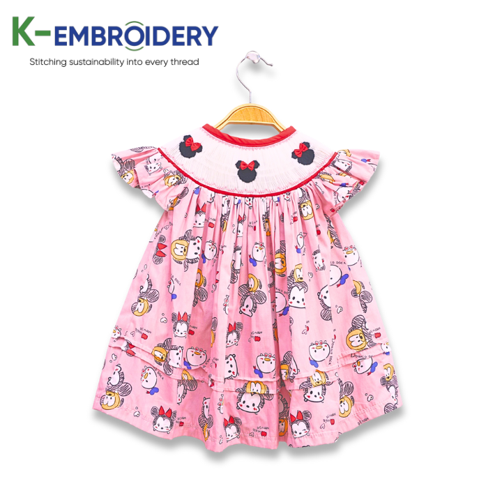 Beautiful Pink Mickey Mouse Dress High-quality Smocked Clothing, Girls Dresses, Children's Clothing