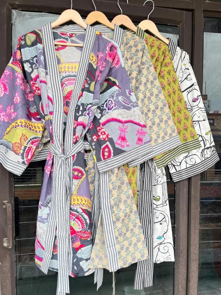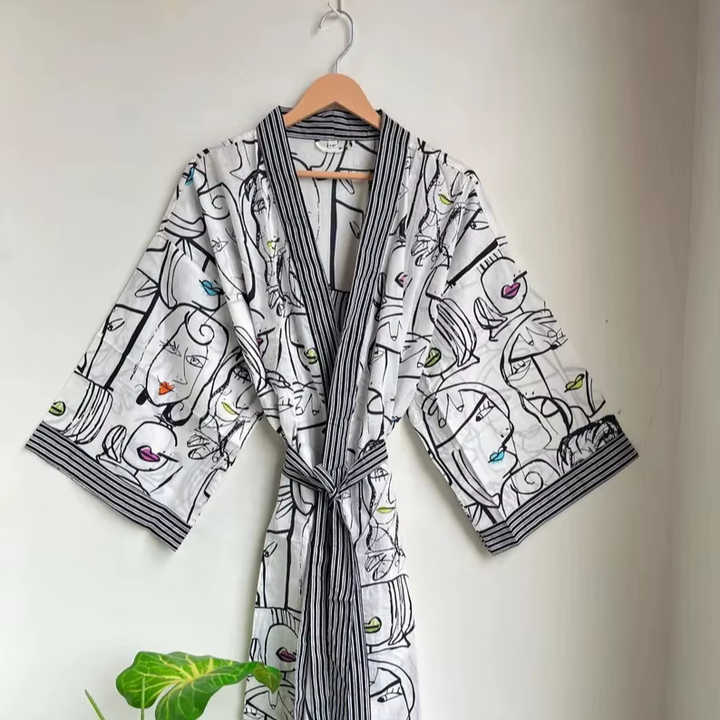 ชุดกิโมโนผ้าฝ้ายขนาดพลัสไซส์ชุดคลุมอาบน้ำพิมพ์ลายชุดคลุมอาบน้ำแบบลำลองสำหรับผู้หญิง