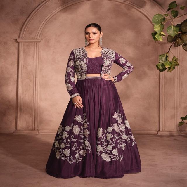 ผ้าไหมชินอนระดับพรีเมี่ยมที่สวยงามพร้อมผ้าเย็บปัก lehenga choli