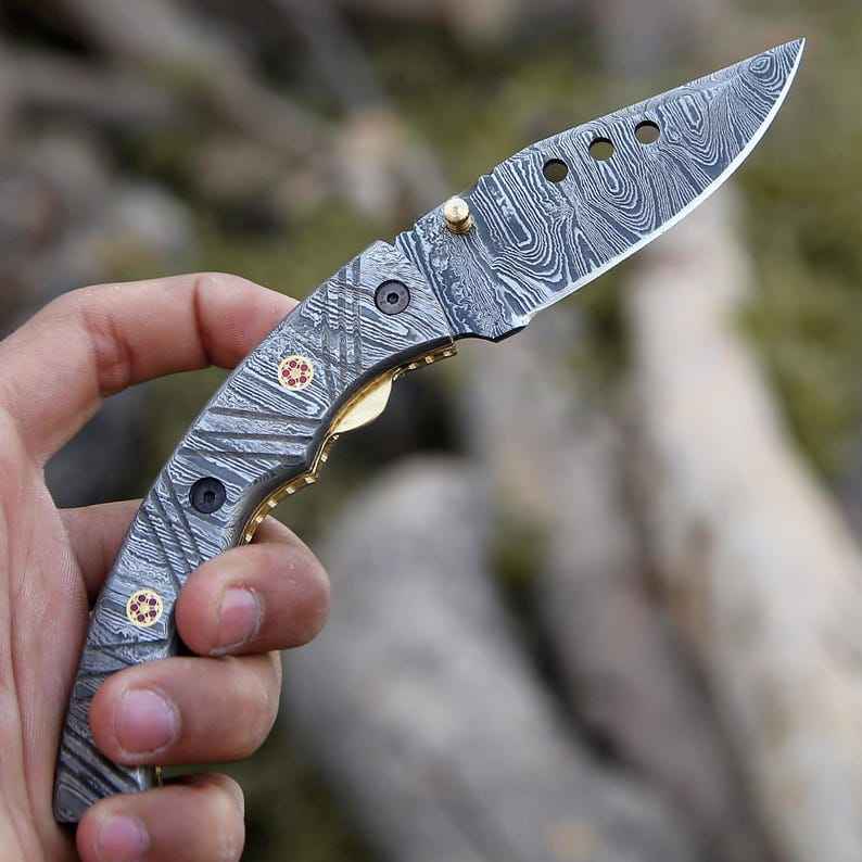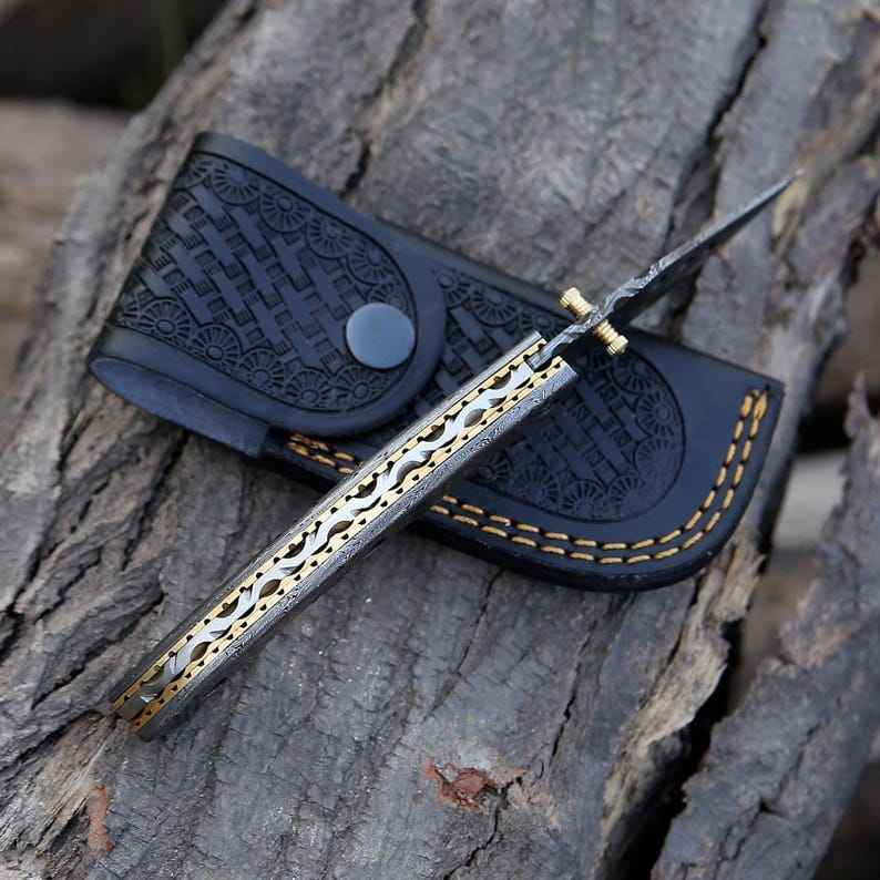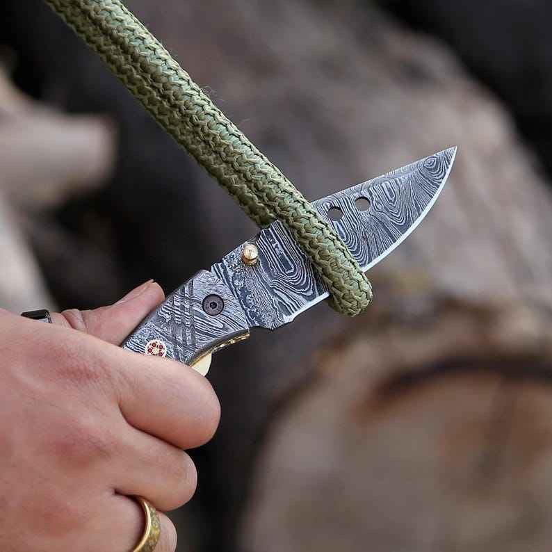 มีดพับเหล็กดามัสกัสทำมือคุณภาพพรีเมียมสวยงาม งานฝีมือคุณภาพสูง เกรดอุตสาหกรรม สำหรับตั้งแคมป์กลางแจ้ง พร้อมปลอกมีดแบบกำหนดเอง