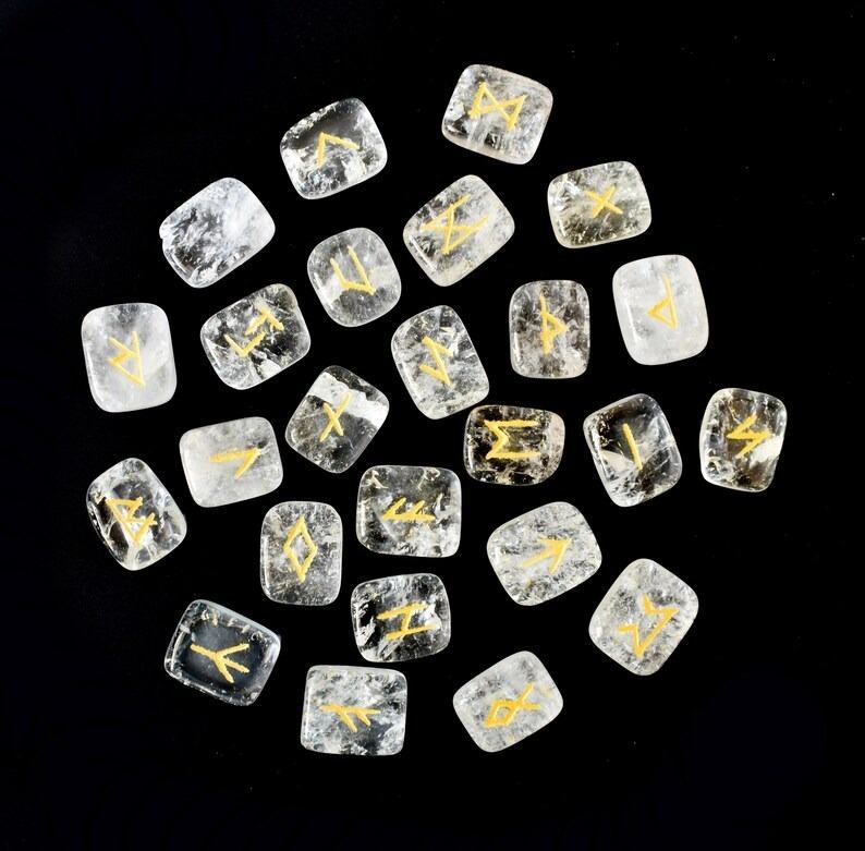 ชุดหินควอตซ์ใสคุณภาพพรีเมียมสวยงาม พร้อมหินอาเกตสลักอักษรฟูทาร์ก สไตล์ฮวงจุ้ย ทำด้วยมือ เป็นมิตรกับสิ่งแวดล้อม