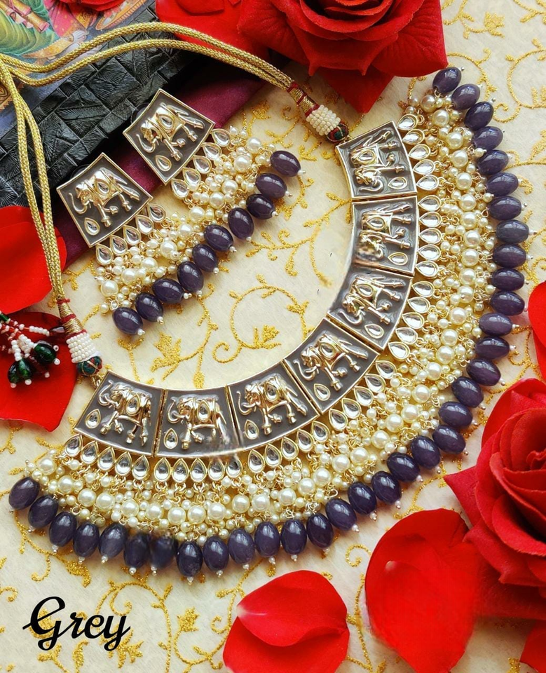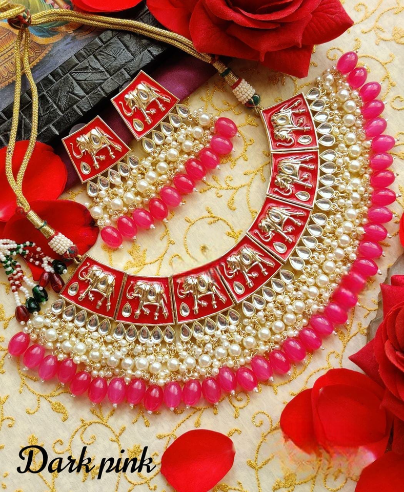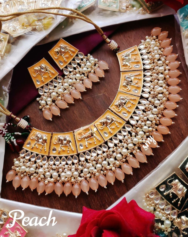 ชุดสร้อยคอช็อคเกอร์ดีไซน์รูปช้าง คุณภาพพรีเมียม สวยงาม ประดับด้วยลูกปัดรูปไข่ ไข่มุก และงานปักแบบ Bandhau ดีไซน์โดดเด่น สีสันสวยงาม สำหรับผู้หญิง