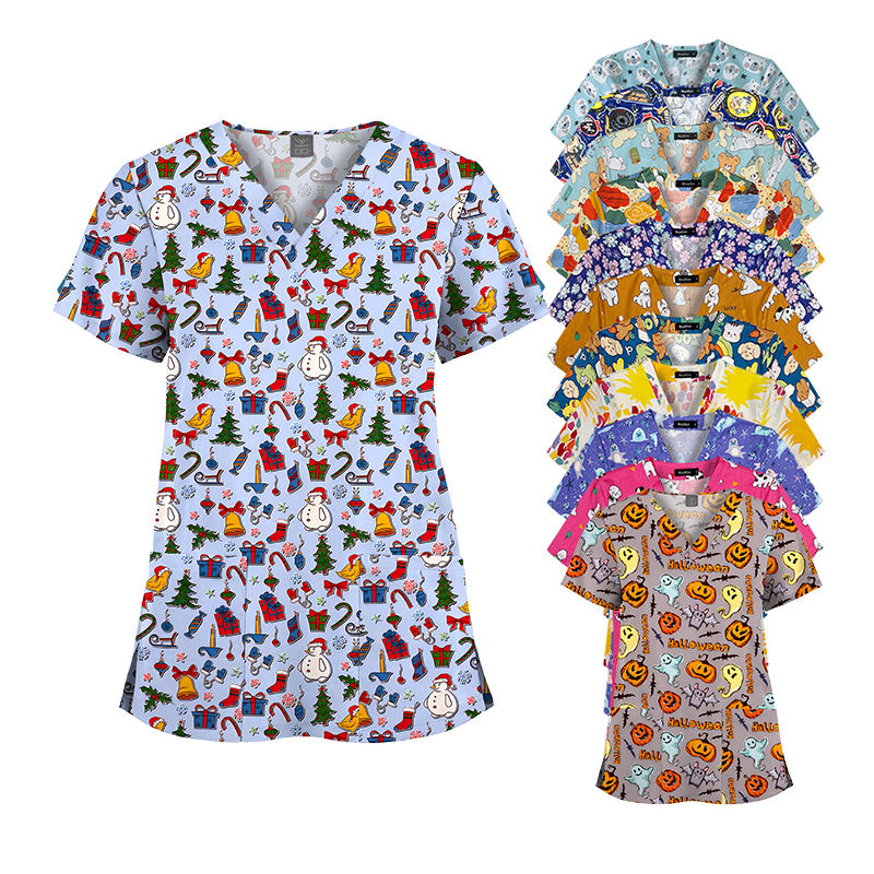 Style:printing Scrub top