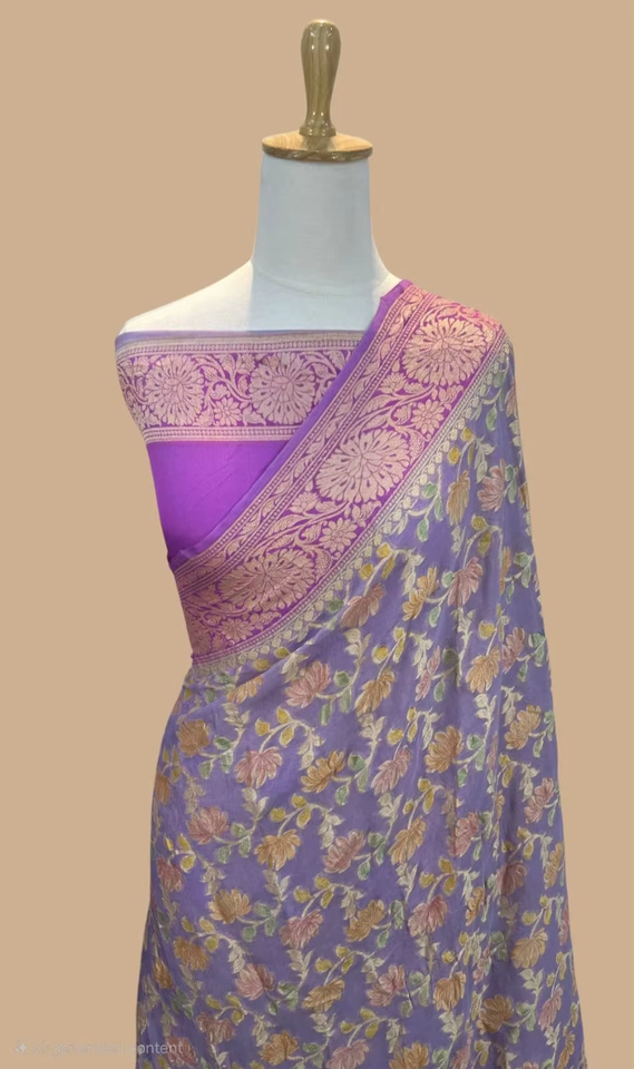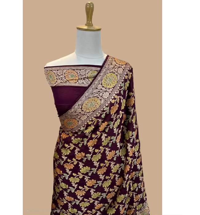 ผ้าม่านทอมือ ผ้าชีฟองสวยงาม ผ้าส่าหรีบานาราสี ผ้าพาวเวอร์ลูม ลายปักแบบดั้งเดิม ป้องกันแสงแดด แห้งเร็ว เสื้อแบบยังไม่เย็บ