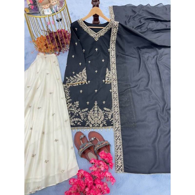 ชุดเสื้อผ้าไหมชีนอนสวยงาม พร้อมกางเกงพลazzo และผ้าคลุมไหล่ สำหรับผู้หญิง สวมใส่ในงานปาร์ตี้ ให้ลุคหรูหรา