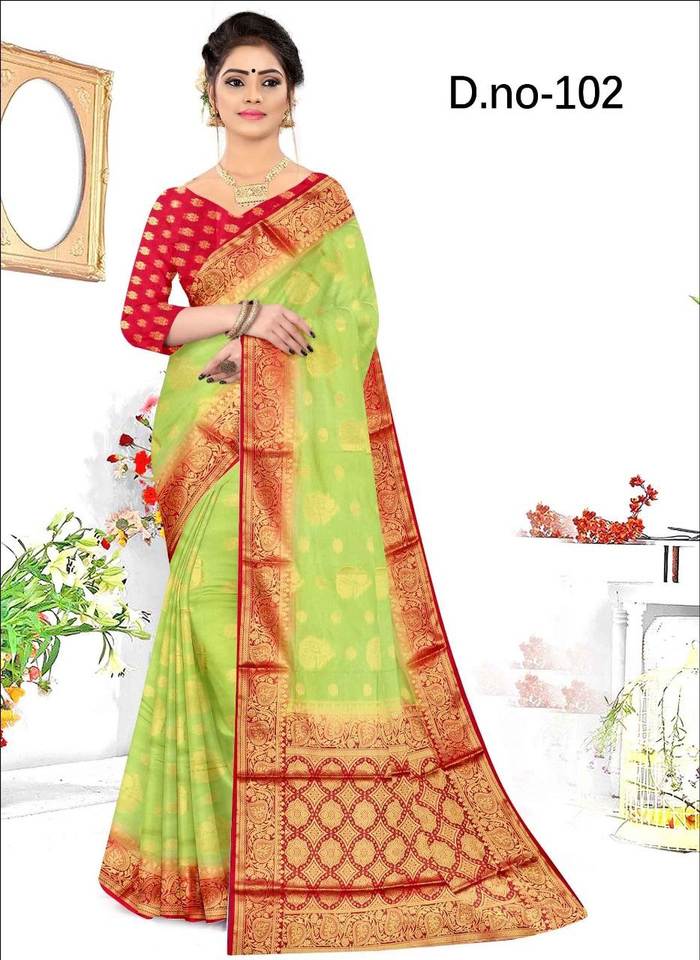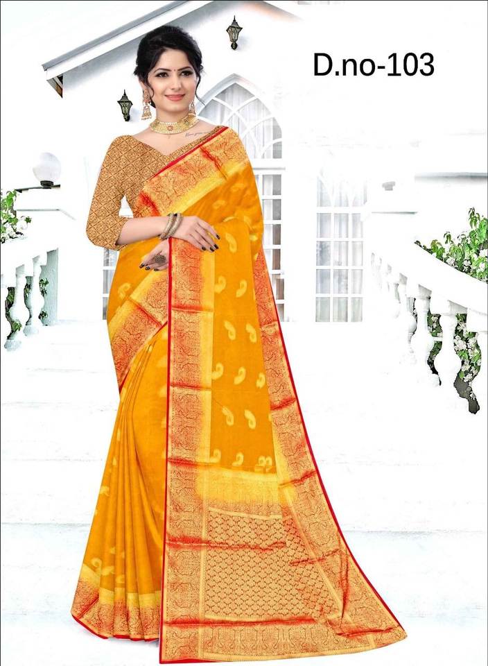 ผ้าส่าหรีแบบไนลอนแท้ที่สวยงามพร้อมบิวตี้ขนาดเล็กสวยงามในการทอสีทองซารี