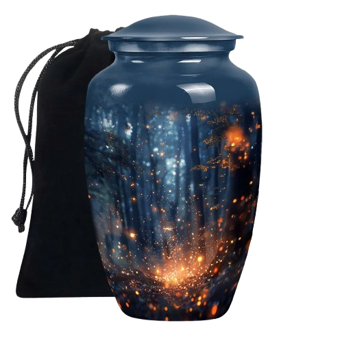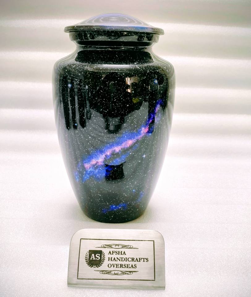 โกศบรรจุอัฐิสำหรับผู้ใหญ่ ทำจากทองเหลือง/อะลูมิเนียมเคลือบสีม่วงสวยงาม ลายกาแล็กซี่ สำหรับใส่เถ้ากระดูกหลังการฌาปนกิจศพ