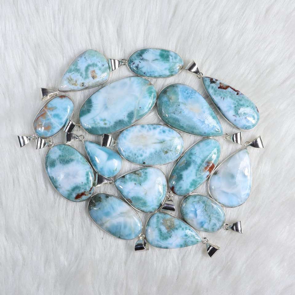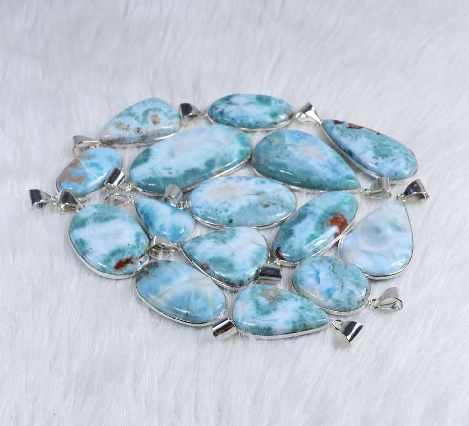 สร้อยคออัญมณีลาริมาร์ที่มีคุณภาพสวยงามเครื่องประดับจี้แบบเรียบจี้ลวดห่อเครื่องประดับสำหรับขายปลีก