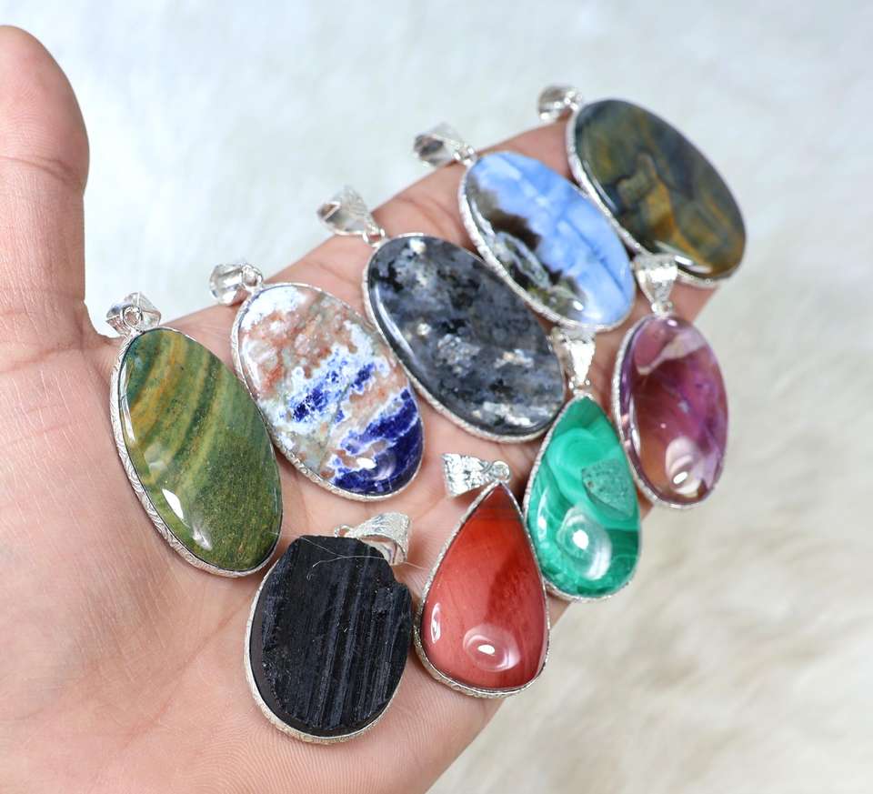 Product Name:Natural Mixed Gemstone silver plated pendants