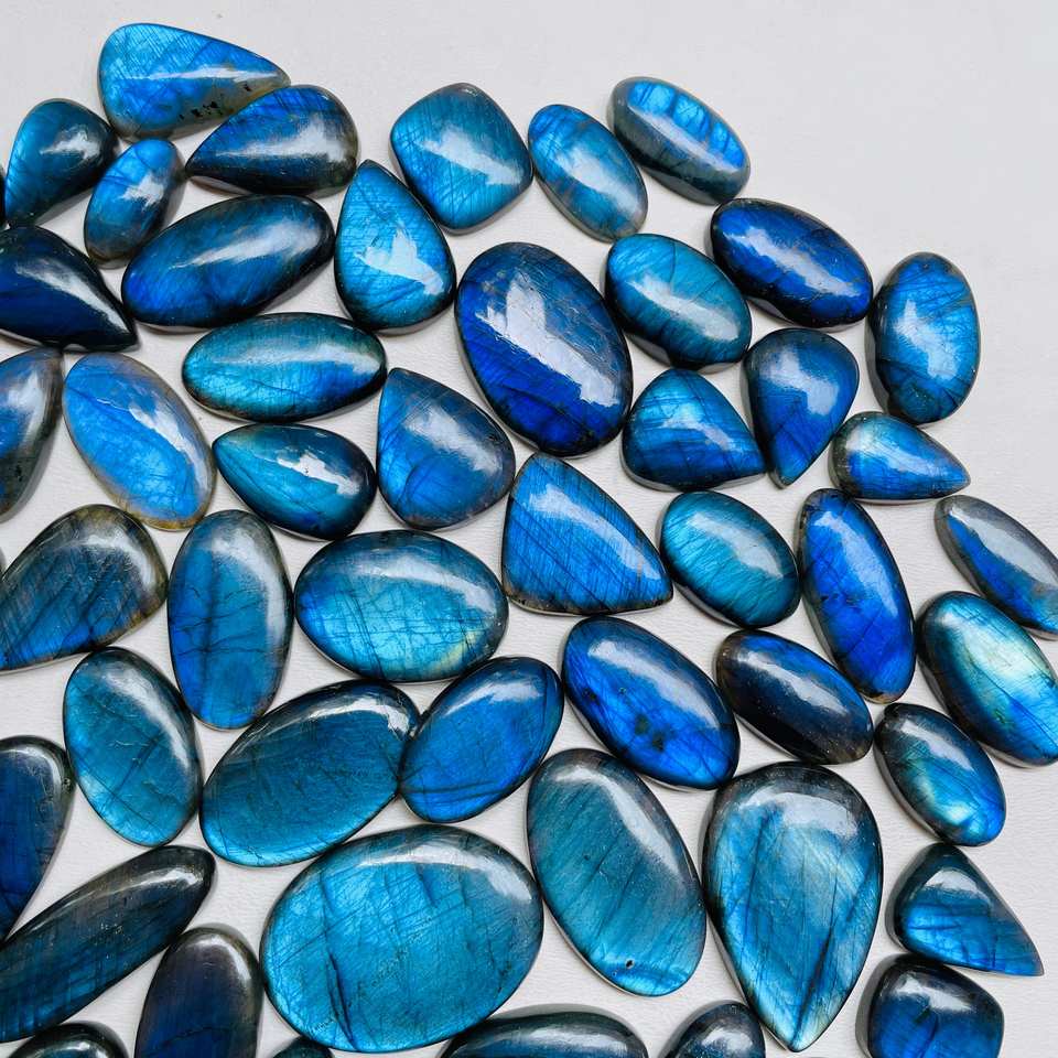 อัญมณีลาบราดอไรต์ธรรมชาติสีฟ้าที่สวยงามอัญมณีเจียระไนขนาดอัญมณีหลวม