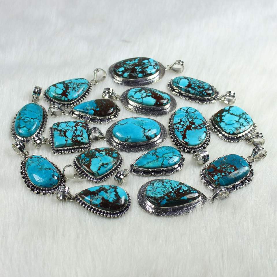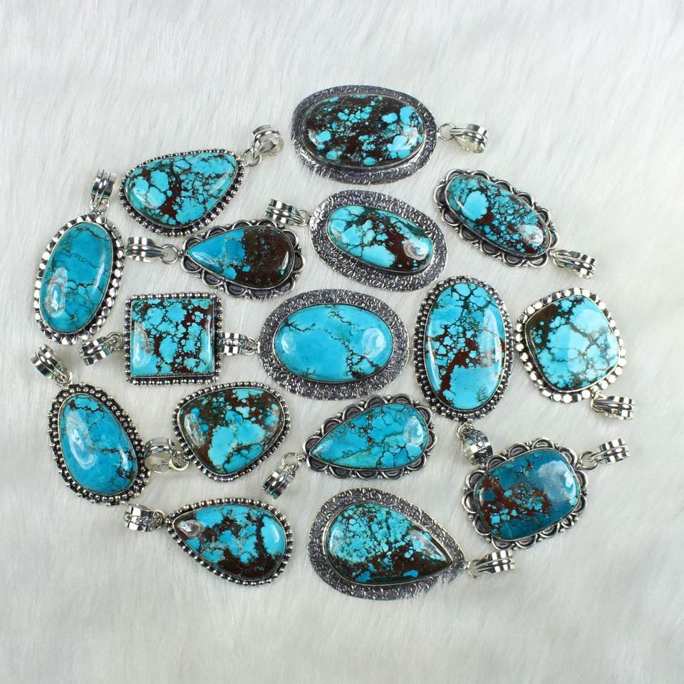 จี้อัญมณีสีเทอร์ควอยซ์คุณภาพดีดีไซน์สวยจี้คอลเลตเครื่องประดับจี้ชุบเงิน