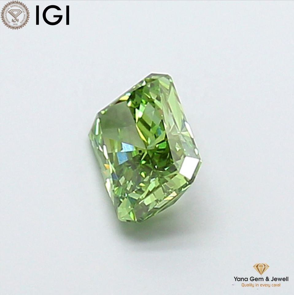 เพชรทรง Radiant ขนาด 1.00 กะรัต สีเขียวสดใส ระดับความสะอาด VVS2 ผลิตด้วยวิธี CVD พร้อมใบรับรอง IGI สำหรับทำแหวนตามสั่ง