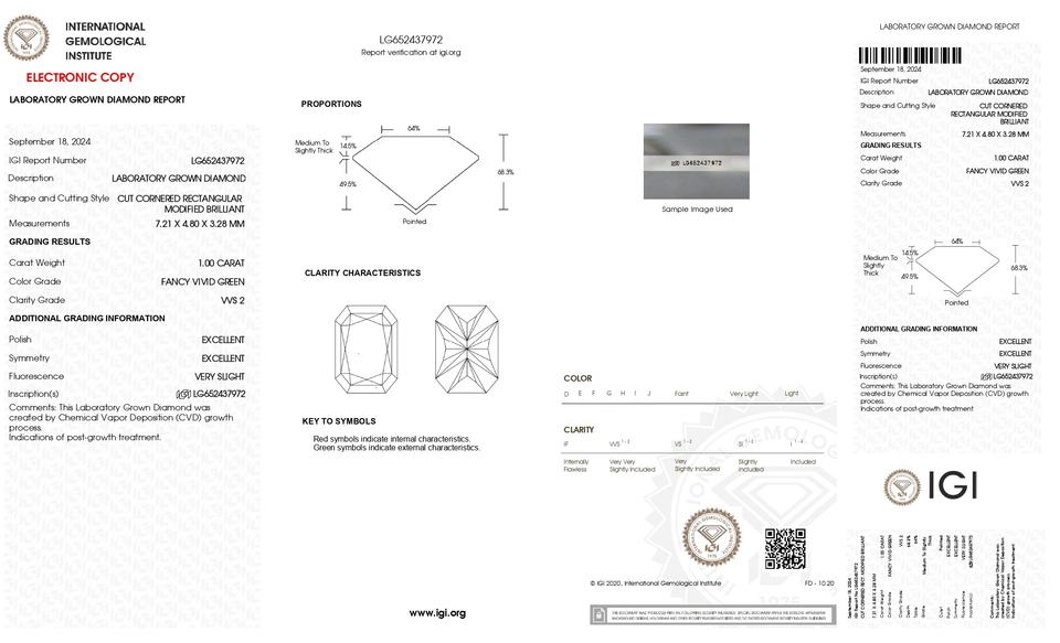 หมายเลขรุ่น:Radiant CVD 1.00 CT. Fancy Vivid Green-VVS2