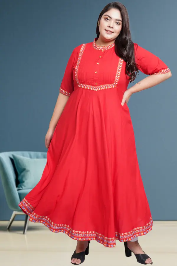 Anarkali Kurta คอลเลกชั่นสไตล์ลำลองยาวถึงข้อเท้าระบายอากาศได้ดีลายดอกไม้ผ้าฝ้ายสีแดงสวย