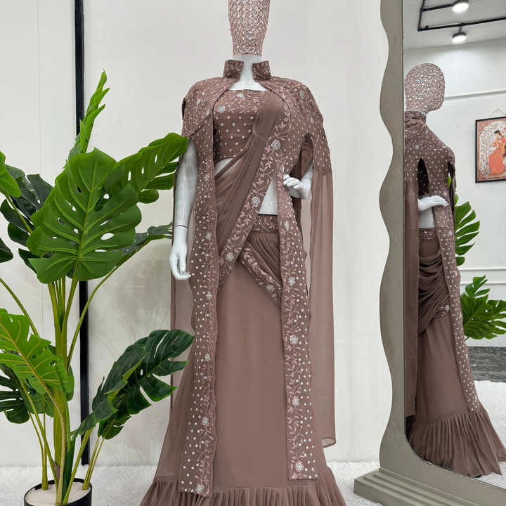 สวยงามพร้อมที่จะสวมใส่ส่าหรี lehenga สไตล์นัวเนียกับ DEP และด้ายตามลำดับ