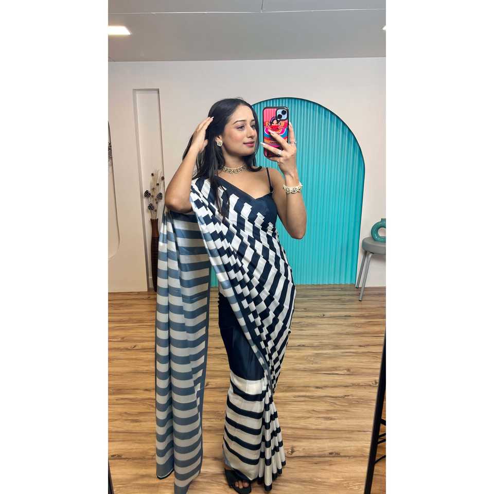 ผ้าส่าหรีพิมพ์ลายดิจิทัลสวยงาม พร้อมสวมใส่ สำหรับงานปาร์ตี้และงานพรอม