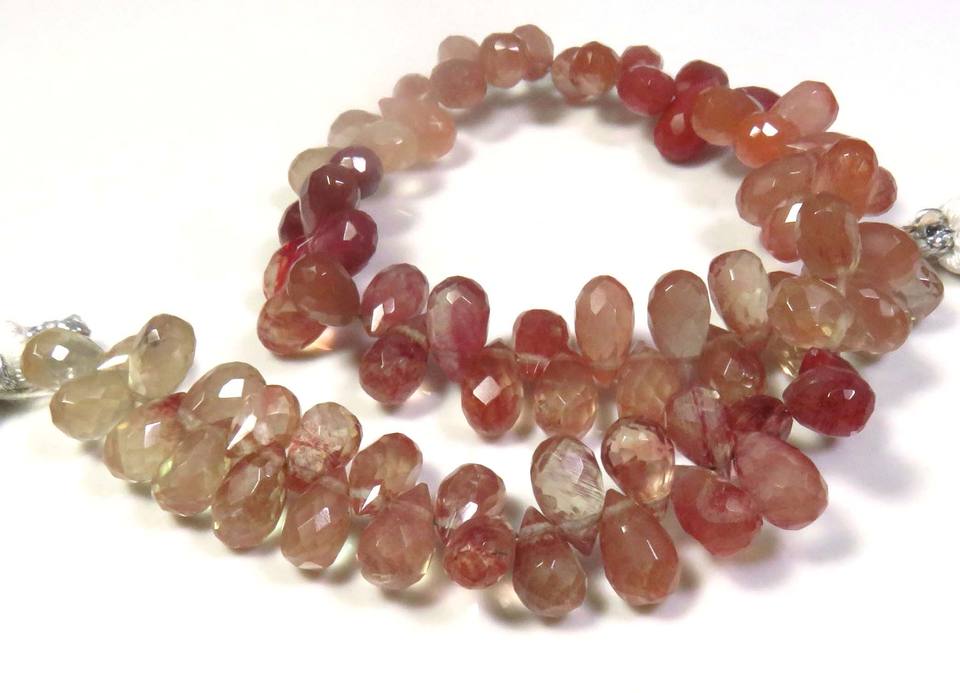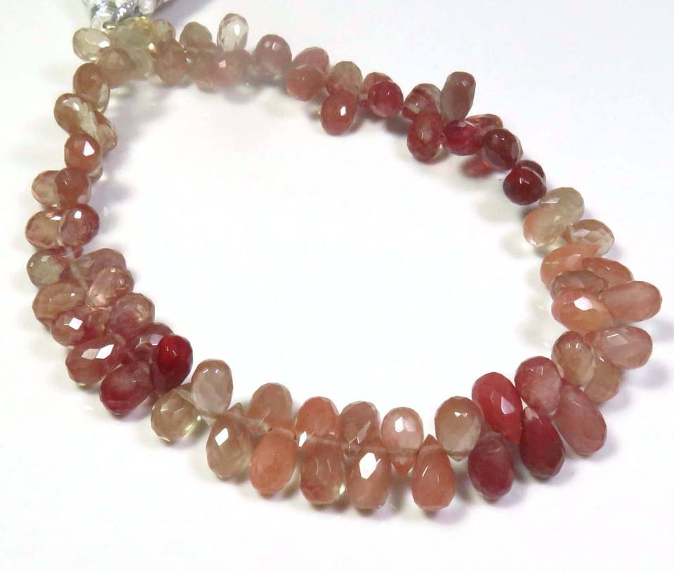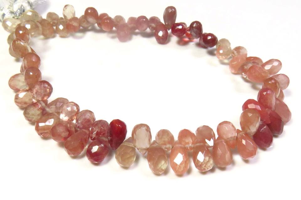 ลูกปัดแอนเดซีนลาบราโดไรต์สีแดงธรรมชาติคุณภาพสูง เกรดสูง ขนาด 8 นิ้ว ทรงหยดน้ำเจียระไนแบบเหลี่ยมเพชรพลอย