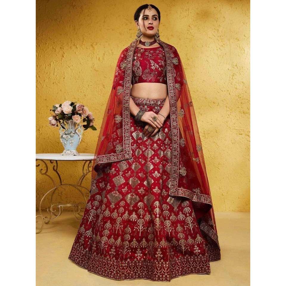 ชุดแต่งงานผ้าไหมปักสีแดงสวยชุด lehenga choli กับ dupatta