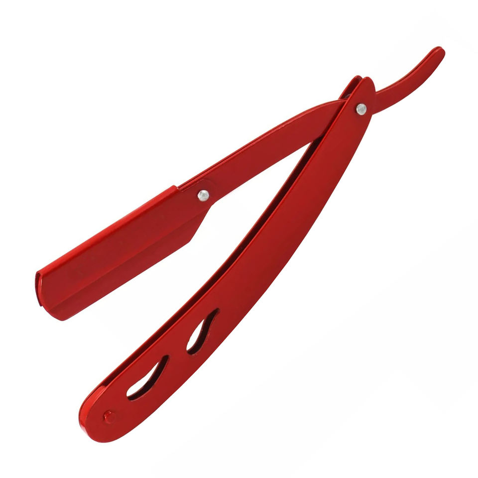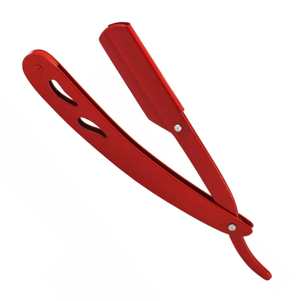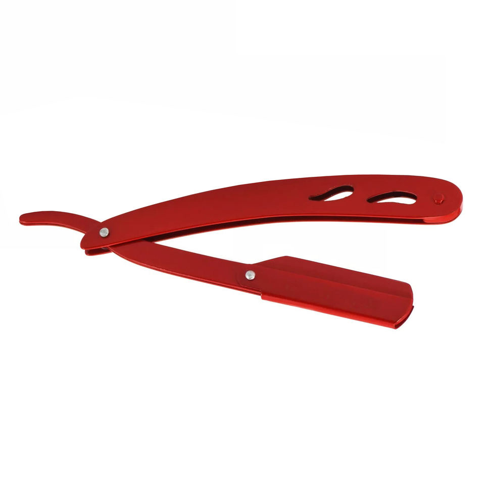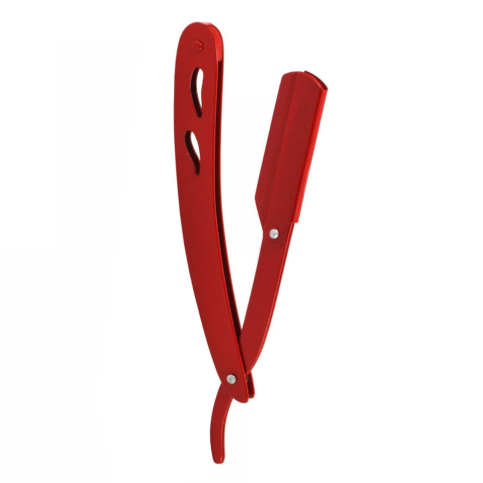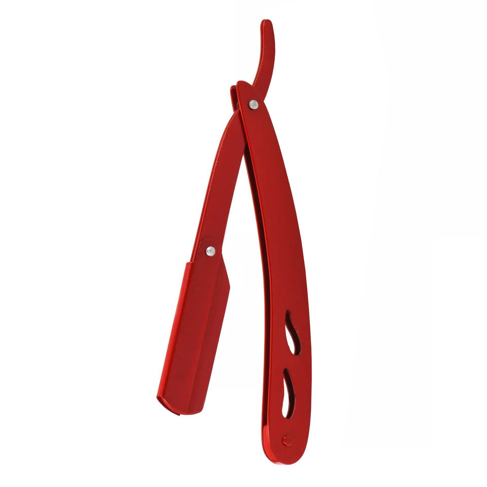 ชุดมีดโกนหนวดร้านตัดผมแบบพับได้ใบมีดเดี่ยวสีแดงสวยปลอดภัยชุดโกนผมแบบใช้แล้วทิ้งสำหรับร้านตัดผม