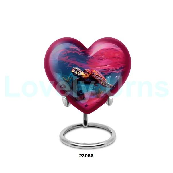 Beautiful Red Turtle Heart Shape Cremation Adult Urn for Human Ashes With Stand & Free Velvet Bag