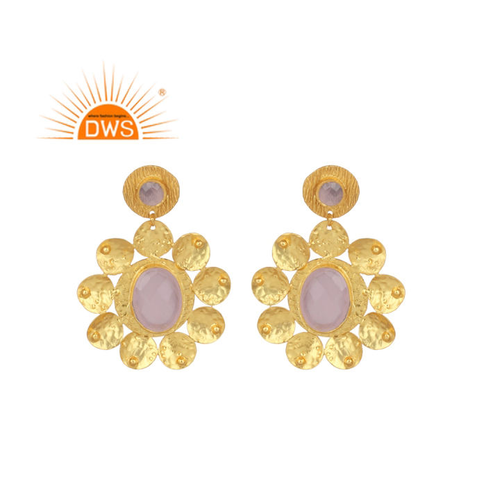 ต่างหูพลอยโรสชาลเซโดนีสวยงาม ต่างหูทองเหลืองชุบทอง ผู้จำหน่ายเครื่องประดับแฟชั่น คอลเลคชั่นคลาสสิก