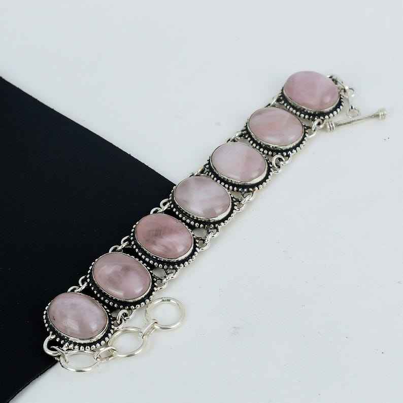 กำไลข้อมือเงินแท้ 925 ประดับด้วยโรสควอตซ์สวยงาม งานแฮนด์เมด สไตล์โบราณ เหมาะเป็นของขวัญเครื่องประดับสำหรับงานแต่งงานสำหรับผู้หญิง