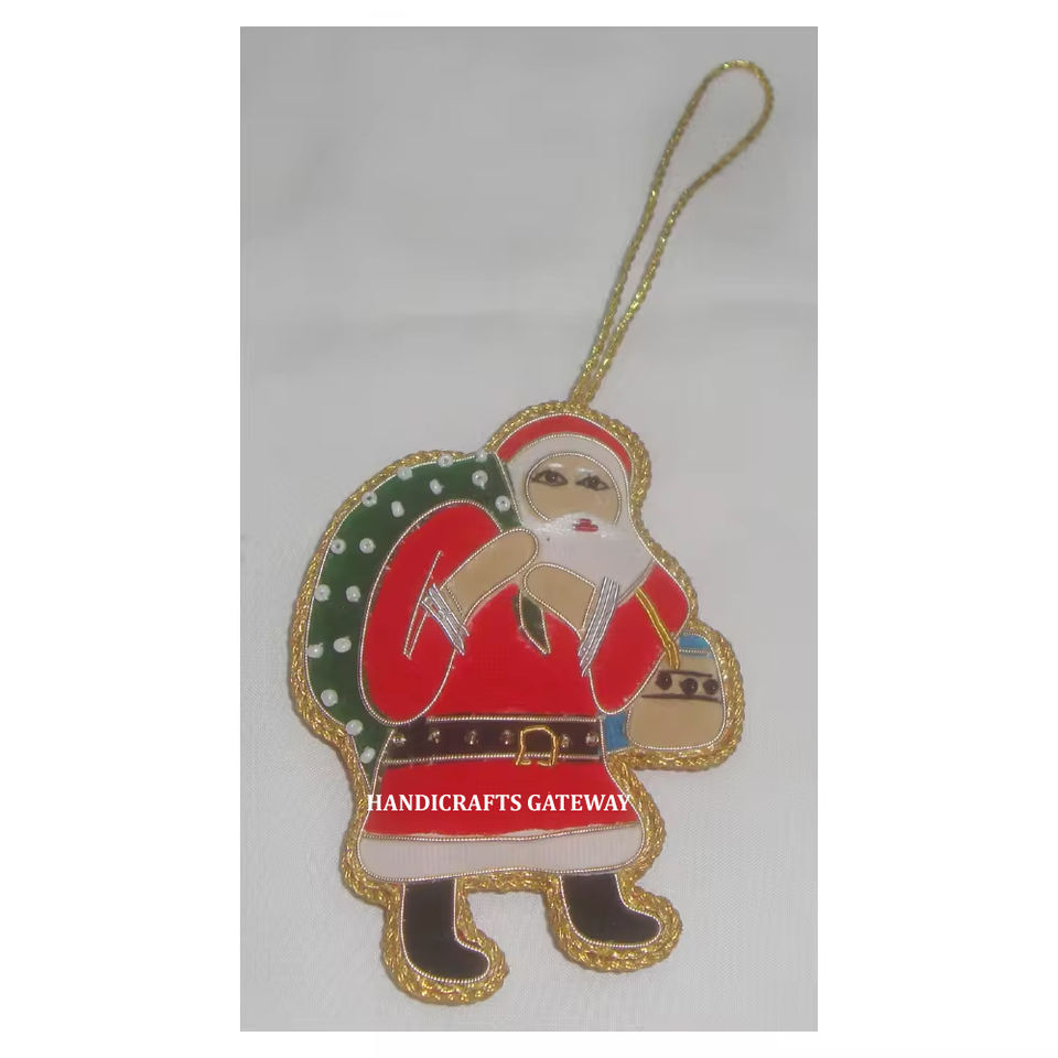 เครื่องประดับตกแต่งรูปซานตาคลอสที่สวยงามงานปักสีทองซารีงานทำมือผู้ผลิตอินเดียจำนวนมาก