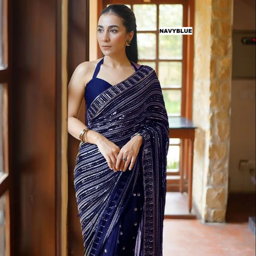 ชุดงานและขอบลูกไม้ที่สวยงามสำหรับงานปาร์ตี้เทศกาลดิวาลีชุดอินเดียแบบดั้งเดิมชุดอินเดียชุดจอร์จเกตซารีบอลลีวูด