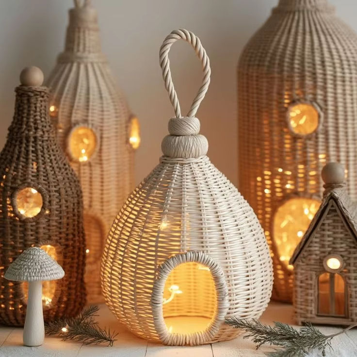 บ้านหัวหอมไม้ไผ่สวยงามและตุ๊กตาเห็ดคริสต์มาส 2 ตัวพร้อมไฟ LED ของเล่นรักษ์โลกสำหรับเด็กอายุ 5 ถึง 7 ปี