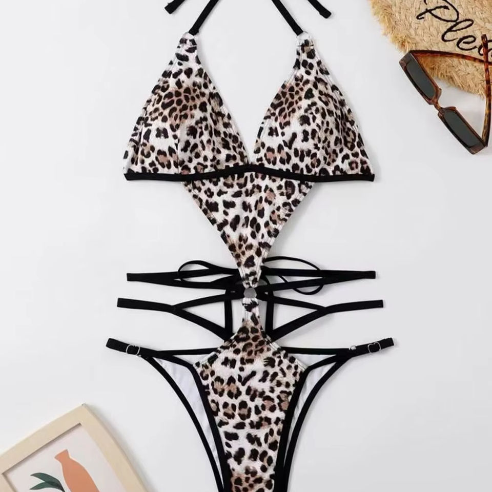 ชุดว่ายน้ำแบบวันพีซเปิดหลังของผู้หญิงชุดว่ายน้ำ2025คอวีพิมพ์ลายสวยงาม