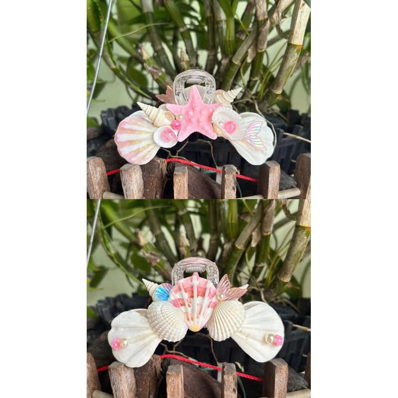 คลิปผมเปลือกหอยที่สวยงามพร้อมกับผิวมุกเงาและเสน่ห์ของชายฝั่งเหมาะสำหรับงานชายหาดเที่ยวเกาะหรือการตกแต่งในแต่ละวัน