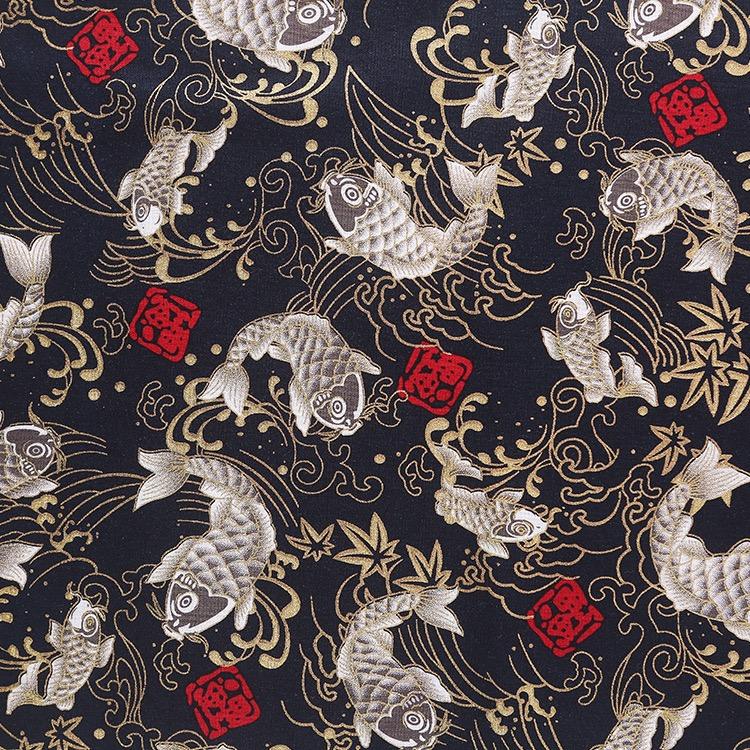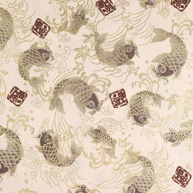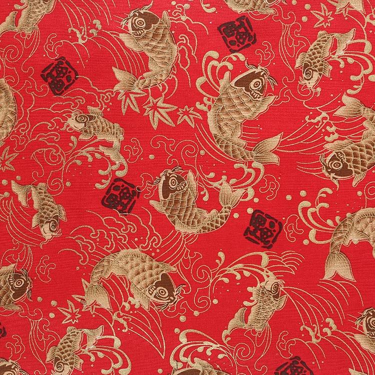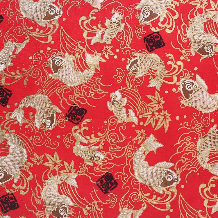 ผ้าคอตตอนแฟชั่นมันเงางามลายปลาโชคดีสีแดงเมทัลลิกสำหรับตกแต่งชุดคริสต์มาส