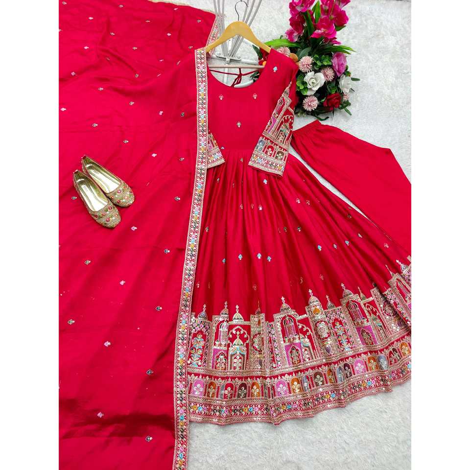 ชุดเดรสผ้าไหมอานาร์กาลีสวยงามพร้อมผ้าคลุมไหล่สำหรับงานปาร์ตี้
