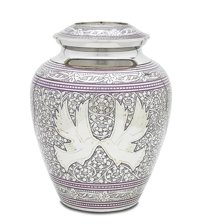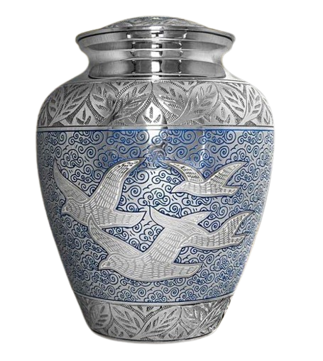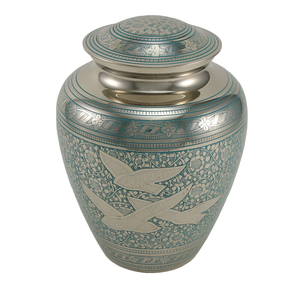 โกศบรรจุอัฐิสำหรับผู้ใหญ่ สไตล์อเมริกัน/ยุโรป ลายใบไม้ทองเหลืองสีเงินแกะสลักเต็มใบ สวยงาม สำหรับเก็บอัฐิ