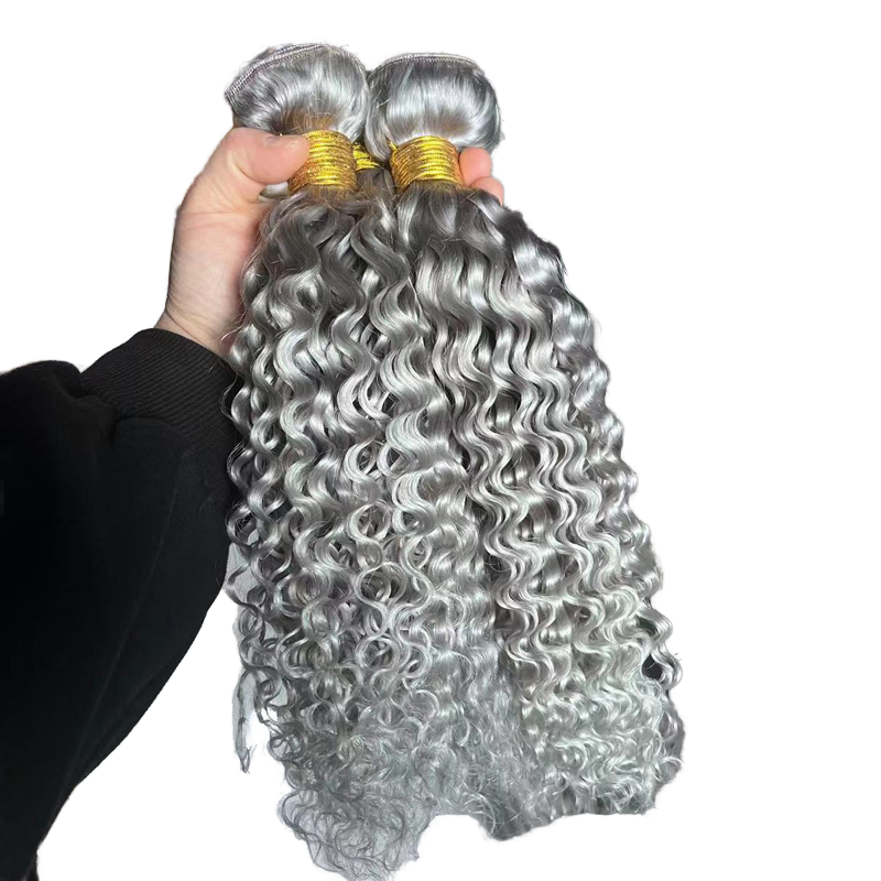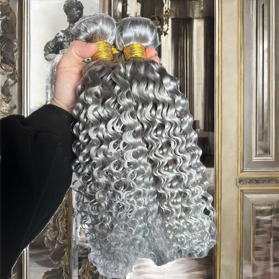 ผมต่อแบบเวฟหยิกสีเทาเงินสวยหรูจากบราซิล แท้ 100% แบบเย็บสองชั้น น้ำหนัก 100 กรัมต่อช่อ มีทุกสี