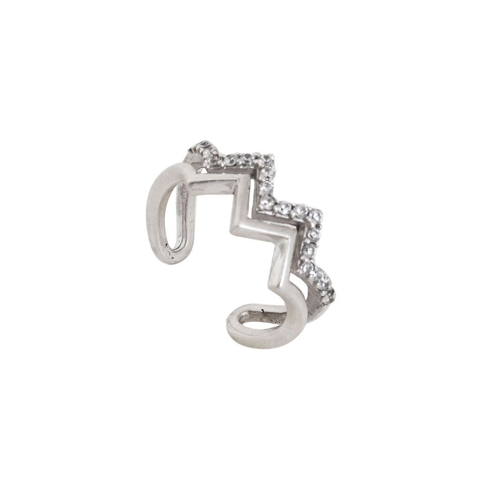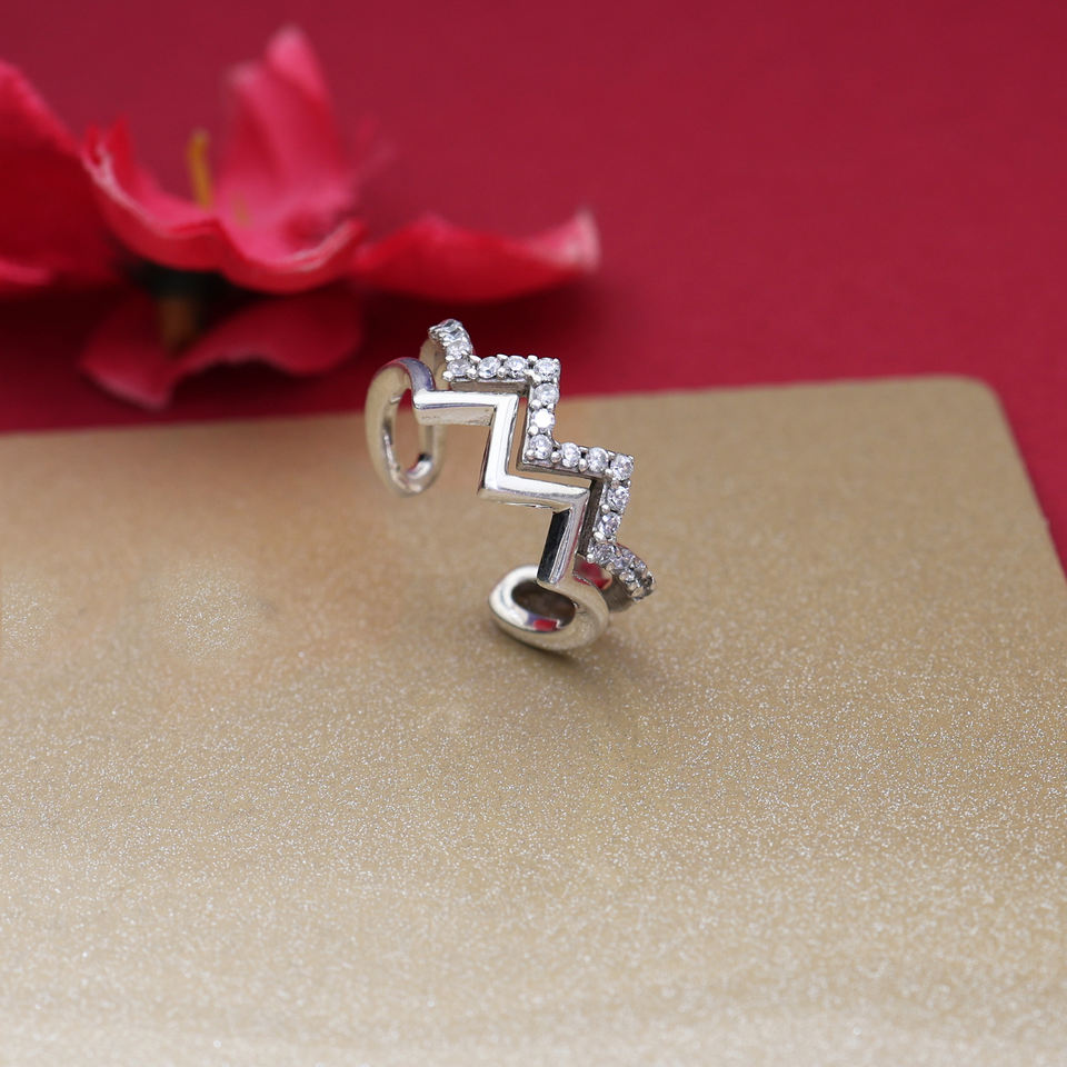 ต่างหูแบบคล้องหูสีเงินลายซิกแซกประดับเพชรระยิบระยับ