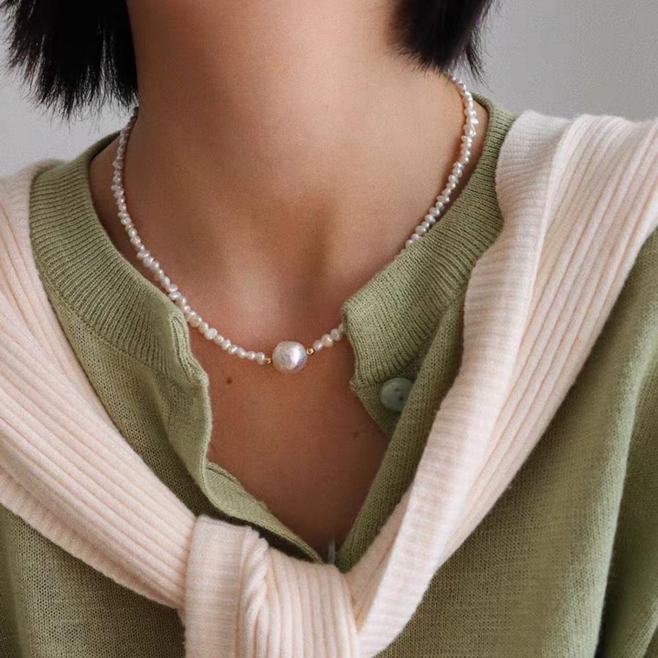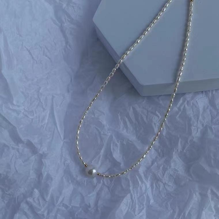 Beautiful Simple Design Natural Freshwater Pearl Necklace Baroque Millet Grain Niche Colorful Collarbone Chain Wrinkled Style
