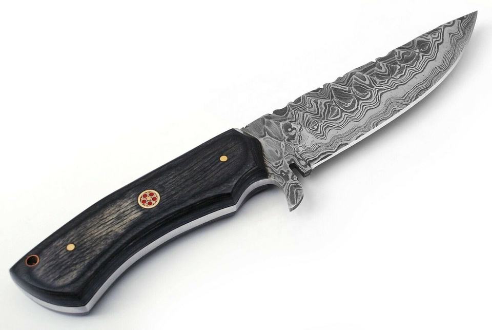 Sizzco มีดสกินเนอร์เหล็กดามัสกัสที่จับไม้แข็งปรับแต่งได้ตามต้องการ