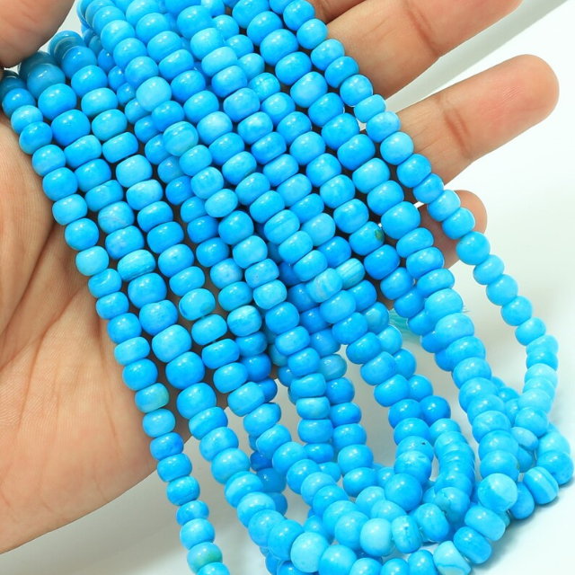 ลูกปัดโอปอลสีฟ้าสวยงาม รูปทรงกลมเรียบ ขนาด 16 นิ้ว, 7 มม. - 9 มม., พลอยโอปอลสีฟ้า, ลูกปัดโอปอลคุณภาพเกรด AAA, เครื่องประดับ