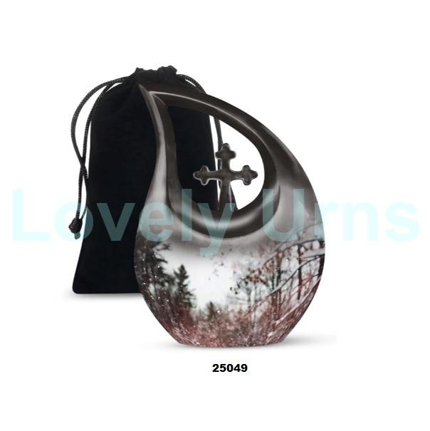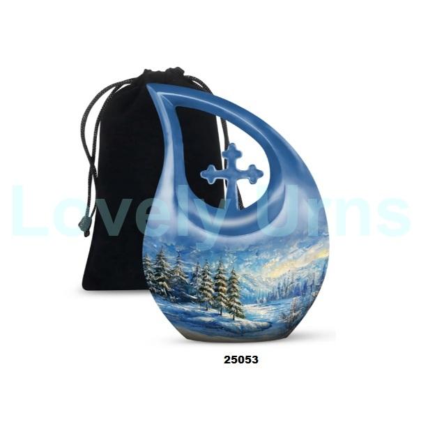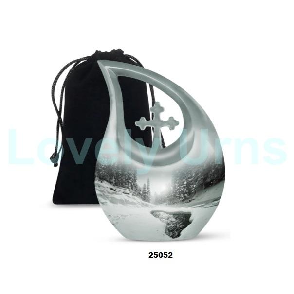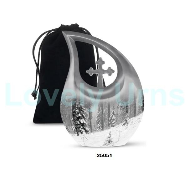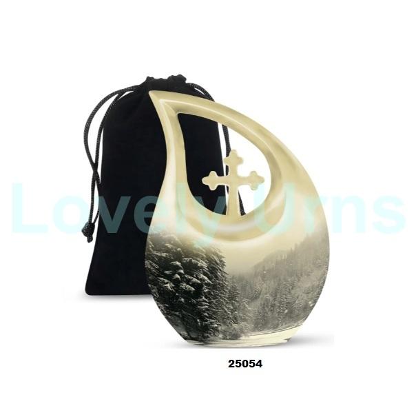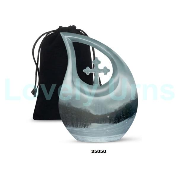 โกศใส่เถ้ากระดูกแบบหยดน้ำตาเกล็ดหิมะสำหรับผู้ใหญ่ขี้เถ้าของตกแต่งรูปไม้กางเขนขนาดใหญ่พร้อมถุงกำมะหยี่ฟรี