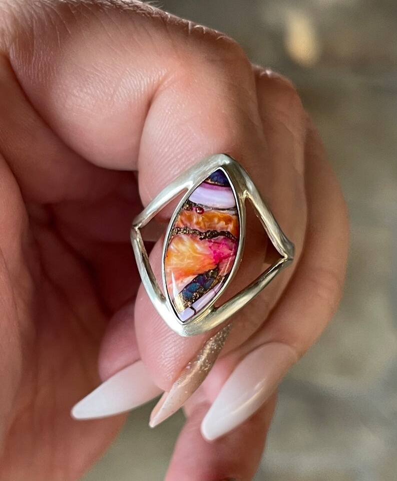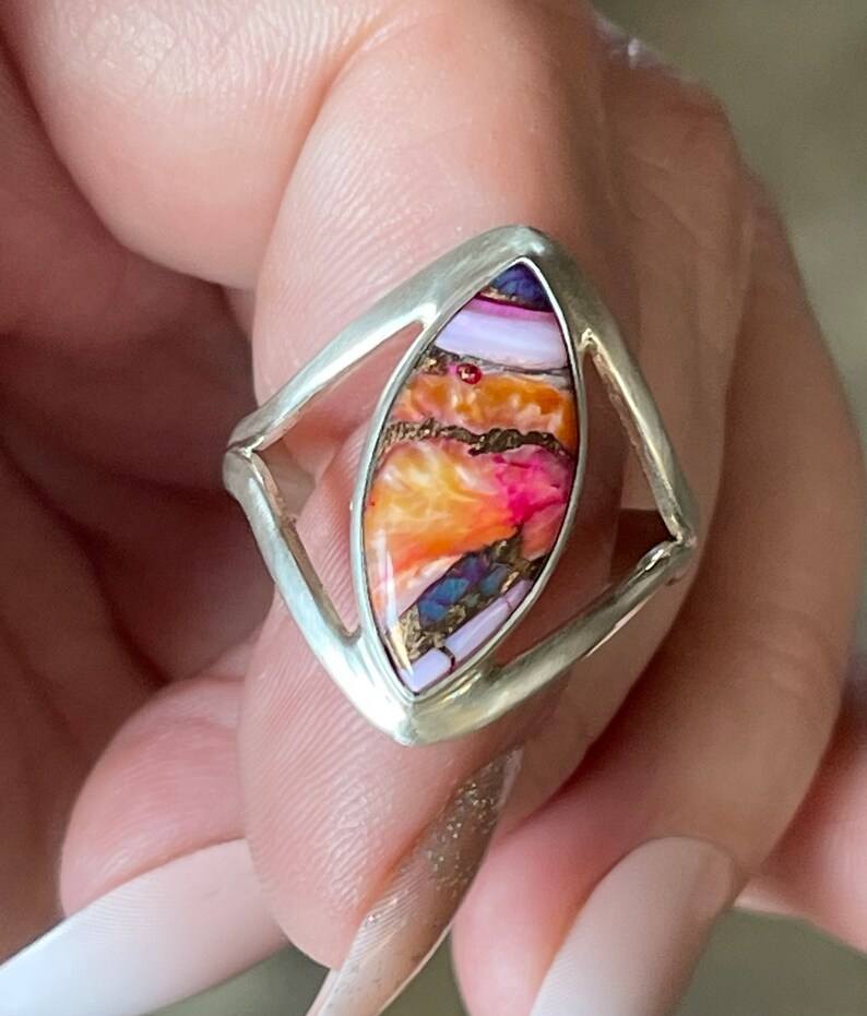 แหวนเงินสเตอร์ลิงสีชมพูดอกรักเร่สีฟ้าครามขนาด10เหมาะสำหรับเป็นของขวัญหรือข้อความ